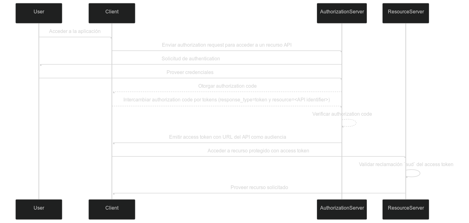 Cuando un cliente solicita un Token de acceso (Access token) de un authorization server, la reclamación de audiencia se incluye en la respuesta del token. Este valor de audiencia es luego validado por el resource server cuando se presenta el token. El resource server verifica si la reclamación de audiencia en el token coincide con su propio identificador o el identificador del servicio que está protegiendo. Si no coincide, el token será rechazado, mejorando la seguridad en sistemas distribuidos, particularmente en escenarios que involucran múltiples microservicios o APIs. Al controlar la reclamación de audiencia, los desarrolladores pueden asegurar que los tokens se usen en el contexto correcto, añadiendo una capa adicional de protección a los flujos de authentication y authorization de su aplicación.
